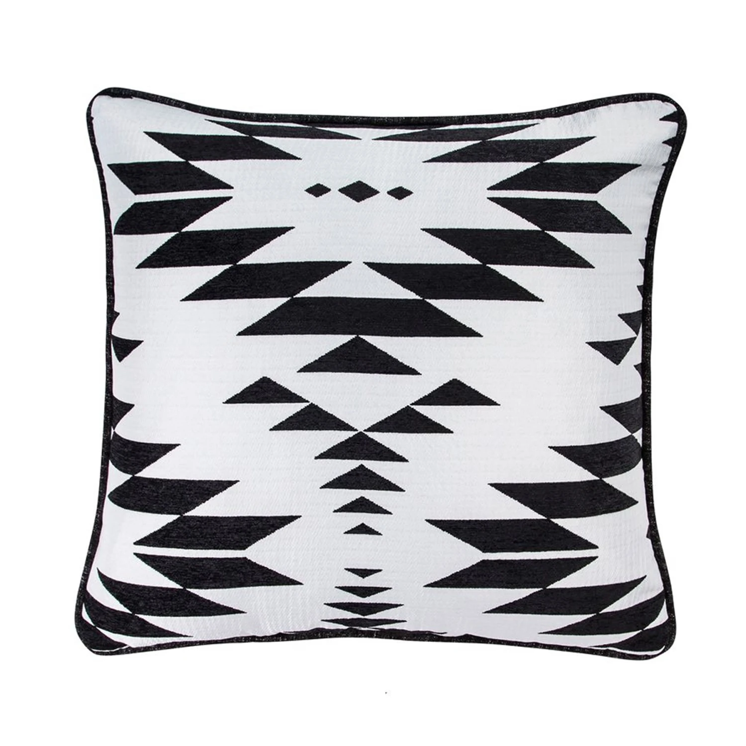 This Aztec inspired Euro sham adds a southwestern flair to any set with its geometric black and white jacquard pattern. It will provide a bold pop to your bed or living room.
