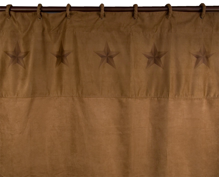Barn Star ultra Suede shower curtain with fabric covered shower rings by HiEnd Accents. Â Â