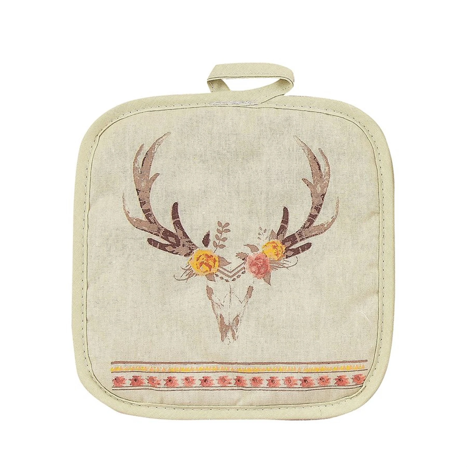 This lovely Desert Skull with Flowers pot holder paired with our Desert Skull oven mitt will showcase your love of the Southwest and brighten up any kitchen!