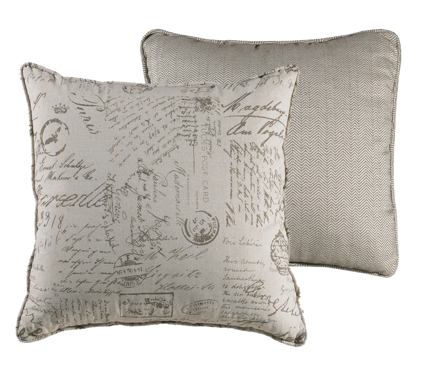 Fairfield printed linen euro sham with velvet back by HiEnd Accents. Reverses to herringbone pattern. 27″ x 27″. 1 piece.