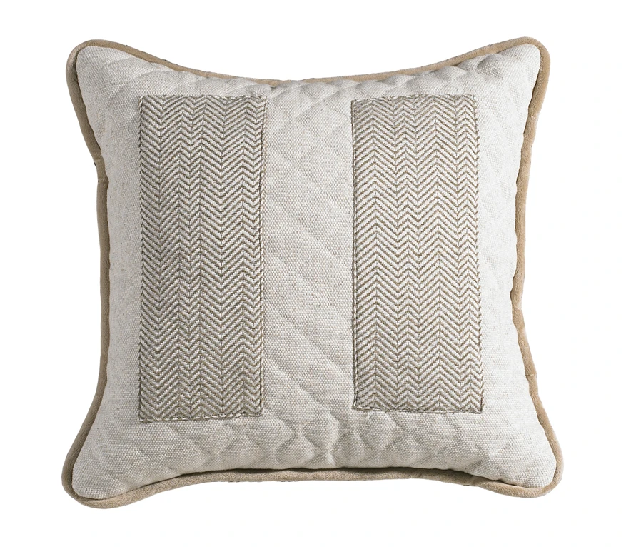 Quilted linen pillow with 2 herringbone pockets and herringbone back.