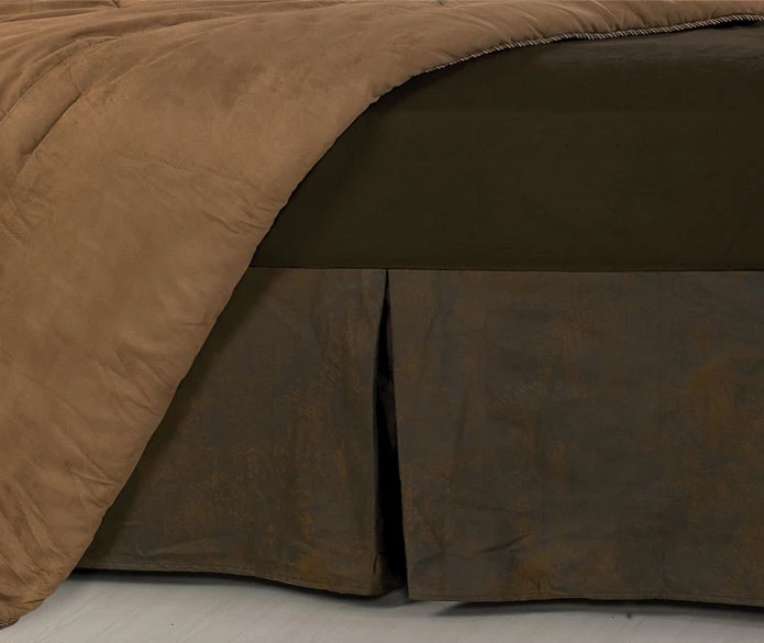 Versatile and rustic, this dark brown, faux leather bedskirt can be use in conjunction with other western or lodge collections. Dry clean recommended. 100% polyester. Imported.
