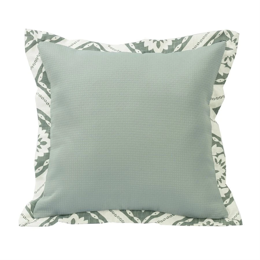 Textured fabric pillow with graphic print flange by HiEnd Accents.