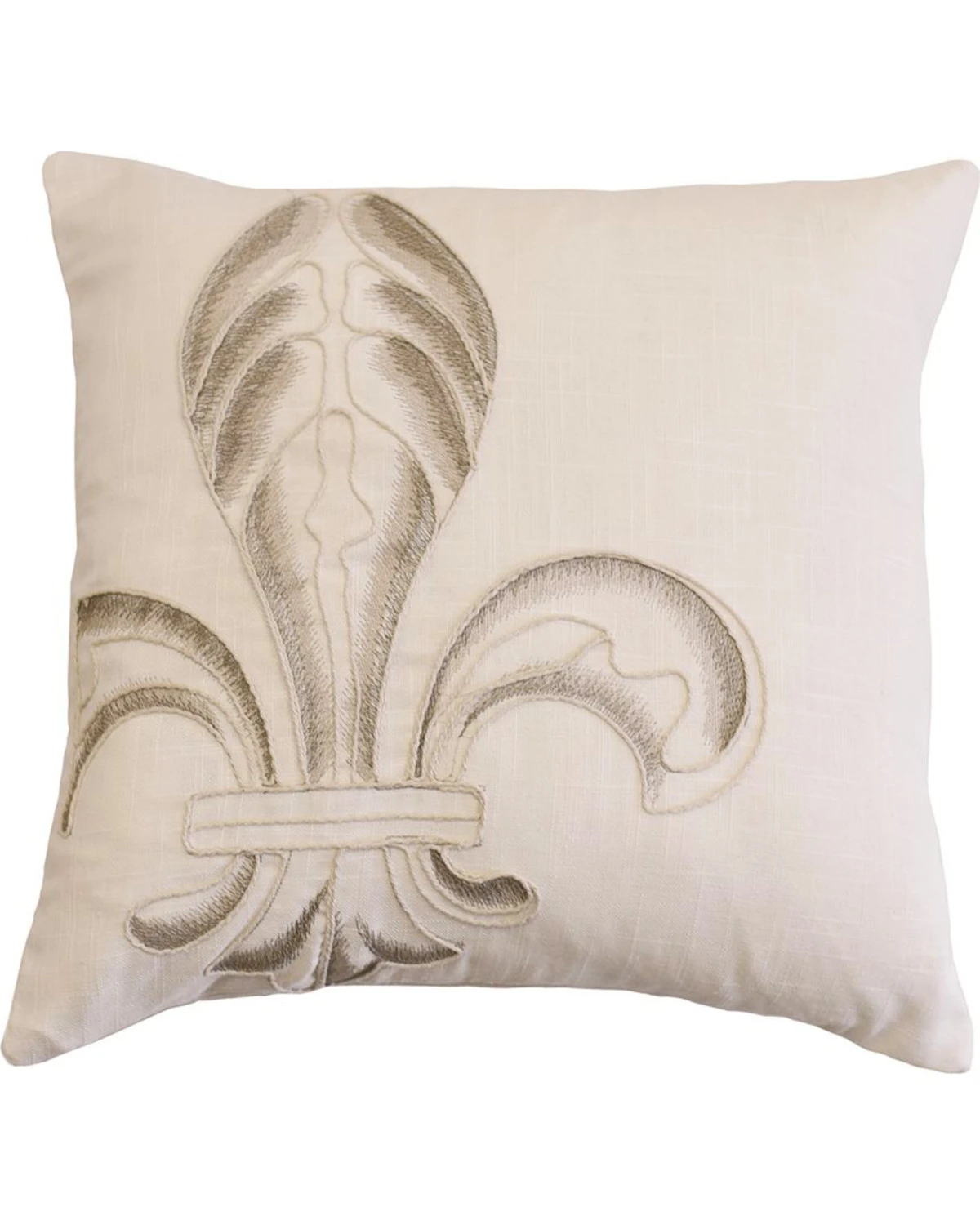 This beautiful pillow by HiEnd Accents features an embroidery Fleur De Lis pattern in a neutral cream color. Measures 18X18″.