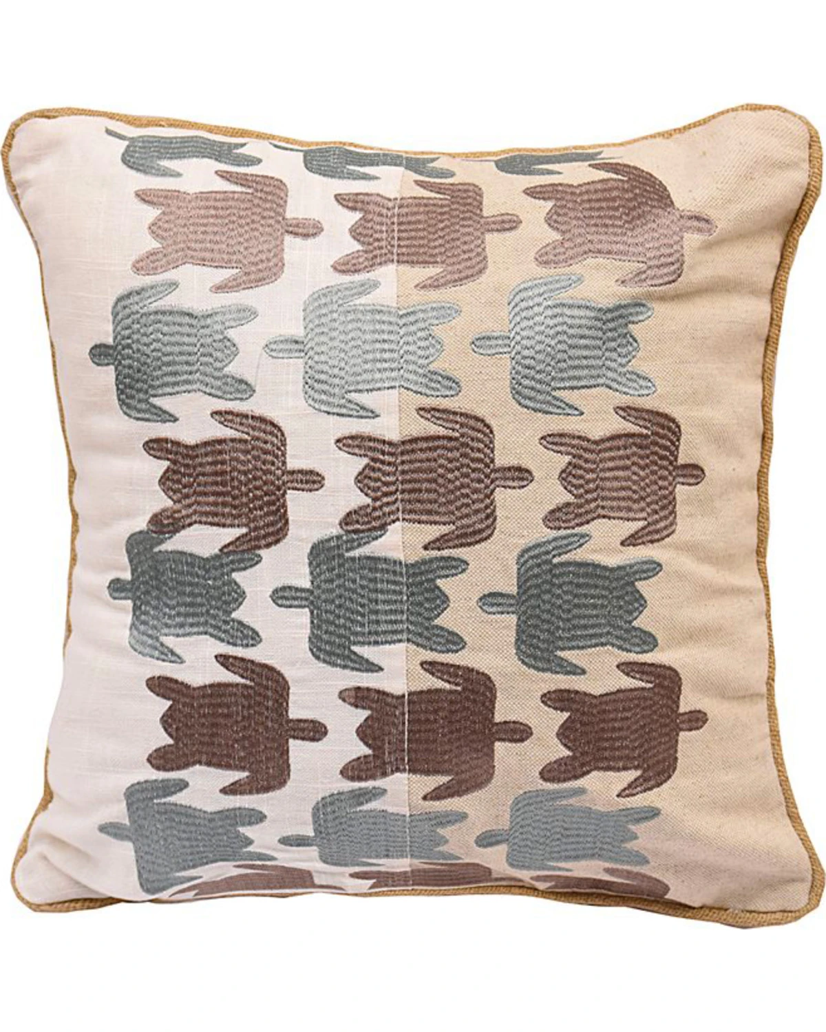 Add a unique touch to your decor with this turtle embroidered linen pillow by HiEnd Accents. Measures 18X18″.