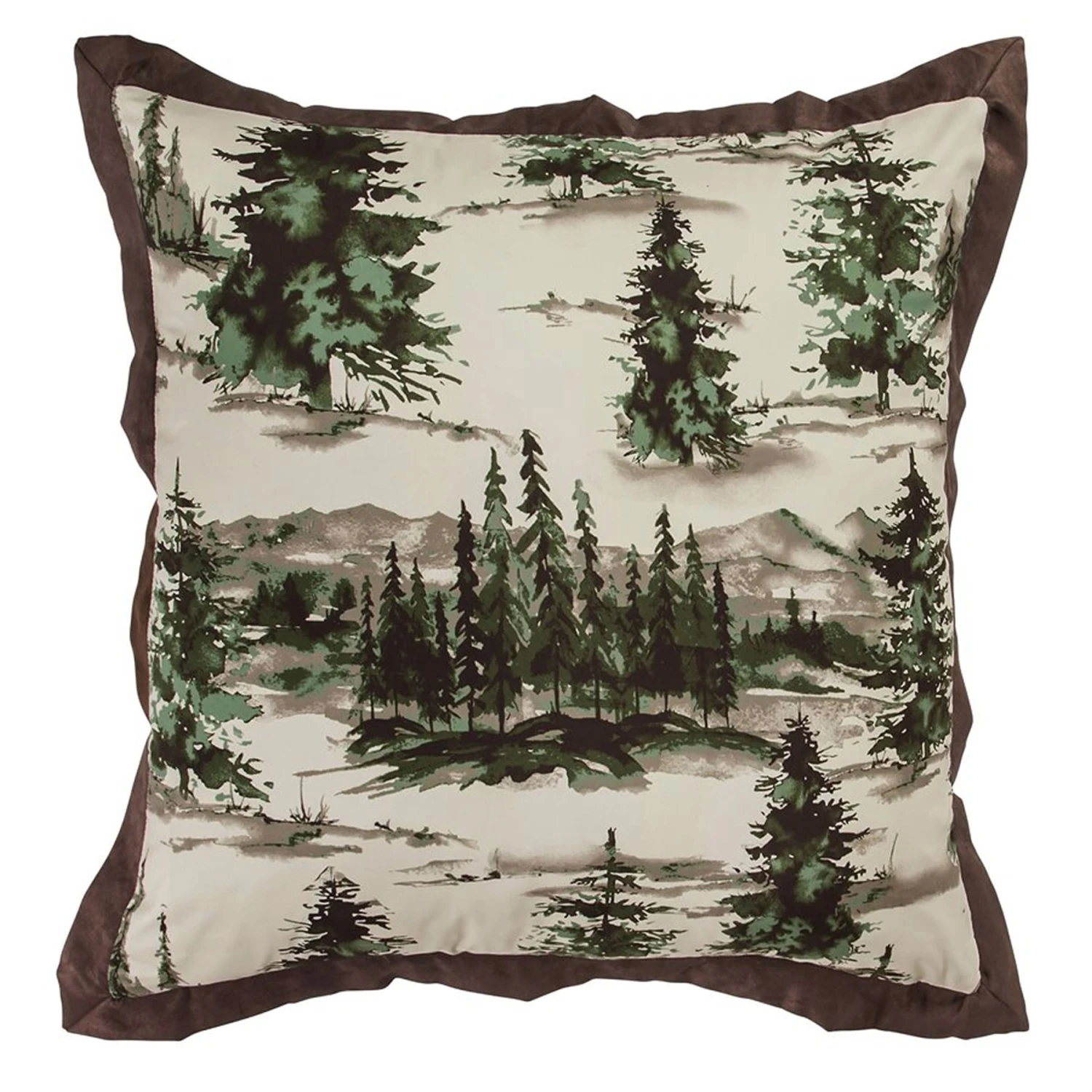 Add a rustic flair with this Joshua Euro sham. Bring the outdoors in with this tree scene pattern. The warm brown border and soft green tones in the tree perfectly complete your lodge bedroom look.