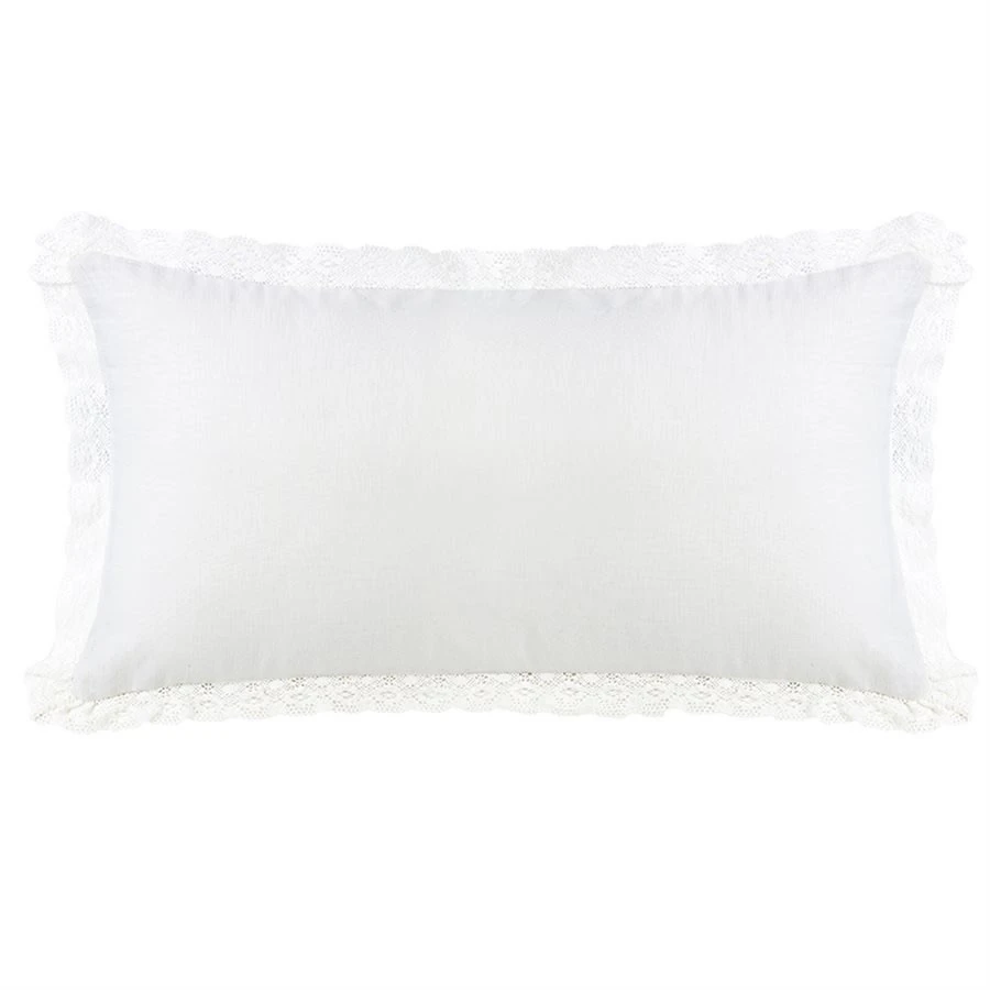 Extra long off-white linen and off-white lace trim pillow by HiEnd Accents.