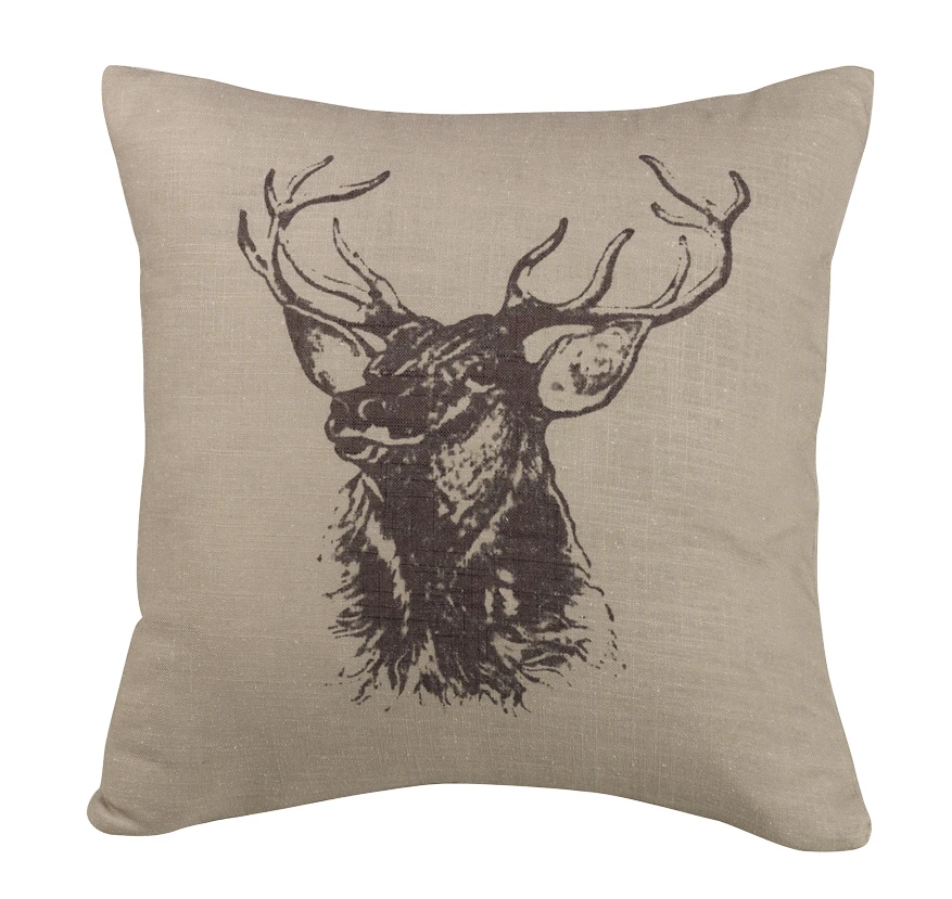 Realistic elk bust screen printed linen pillow by HiEnd Accents. Â 18″ x 18″