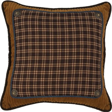 Ocala corduroy, plaid and faux leather pillow with concho accents by HiEnd Accents.