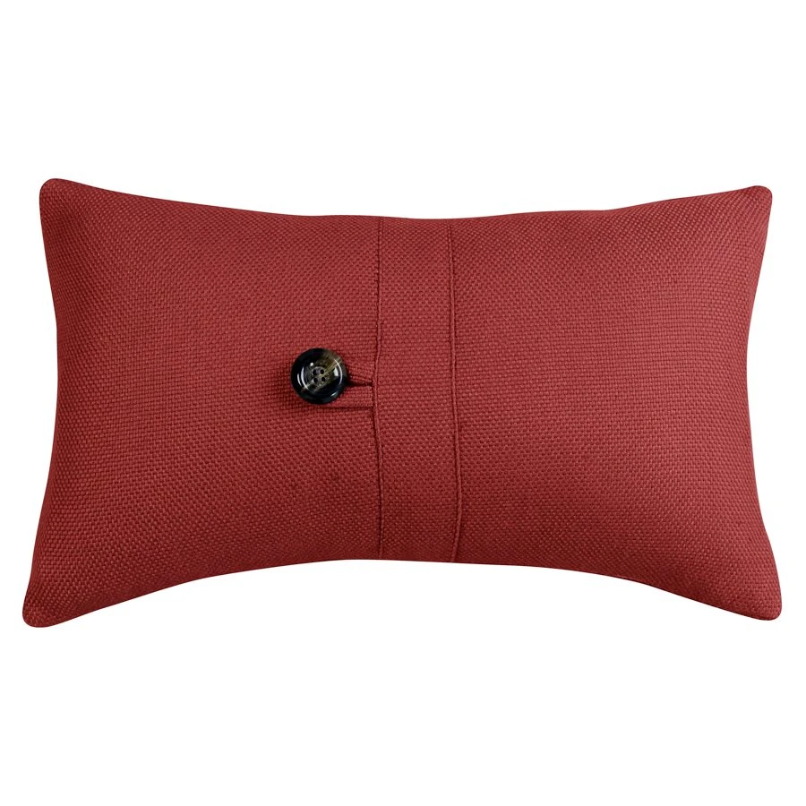 Designed for the Prescott collection, this rectangular pillow features red linen fabric with a faux tortoise button center accent.