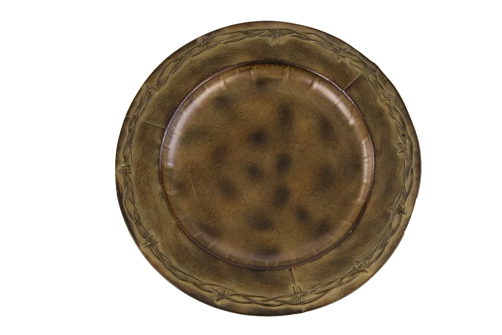 Round Rustic Barbed Wire charger by HiEnd Accents.