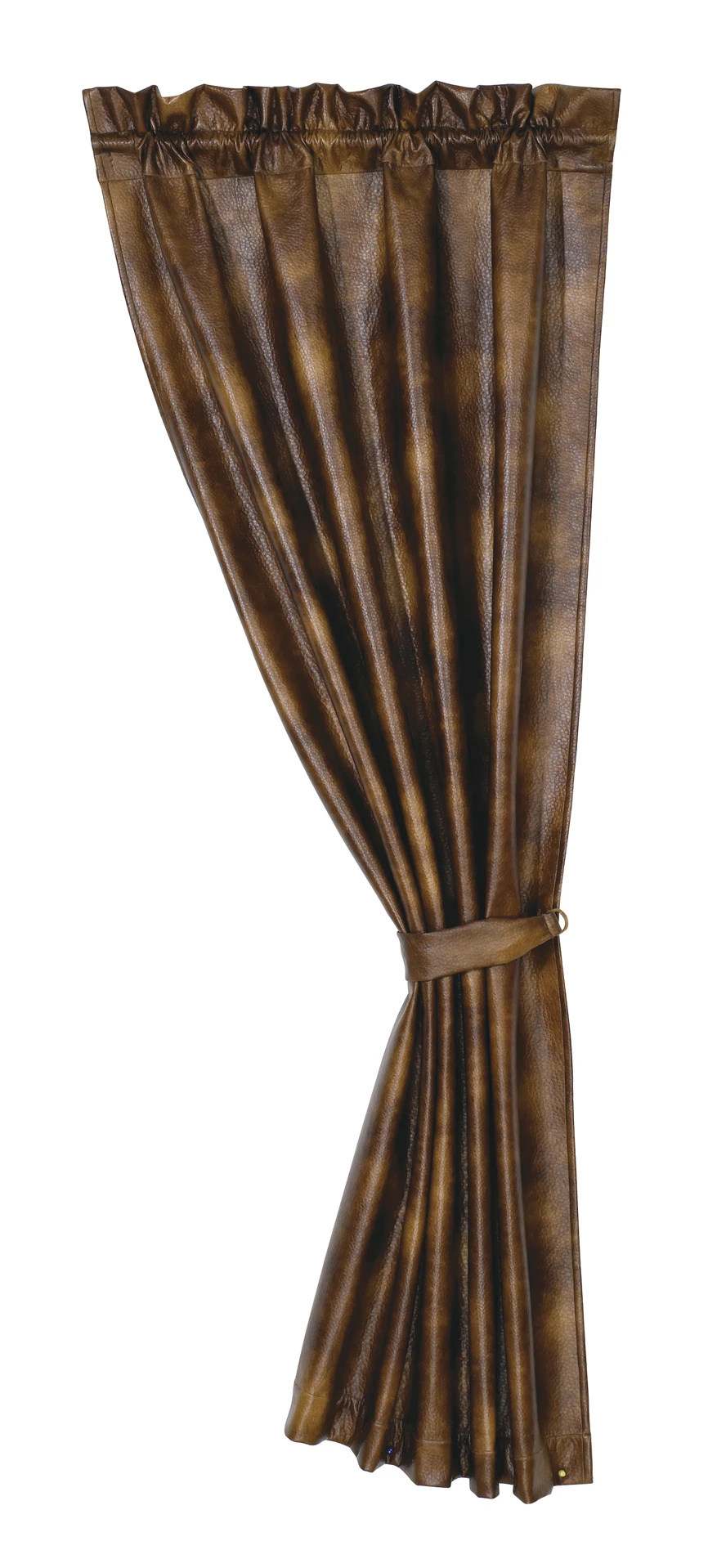 Rustic distressed faux leather curtain panel by HiEnd Accents.