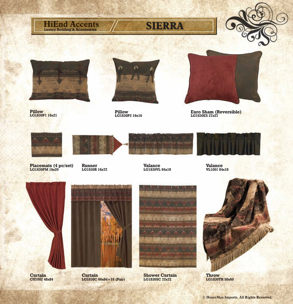 Luxurious chenille fabric in southwestern print accented with Chocolate Brown faux leather and Red ultra suede accents.