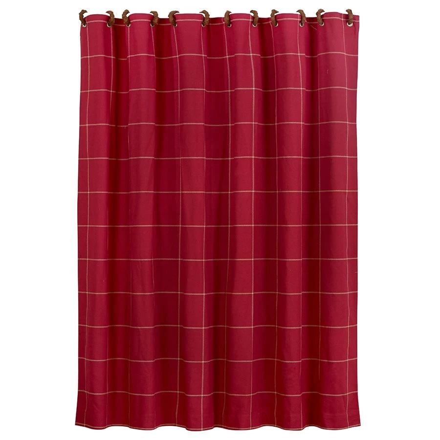 South Haven shower curtain. Red window pane shower curtain with button detail by HiEnd Accents.