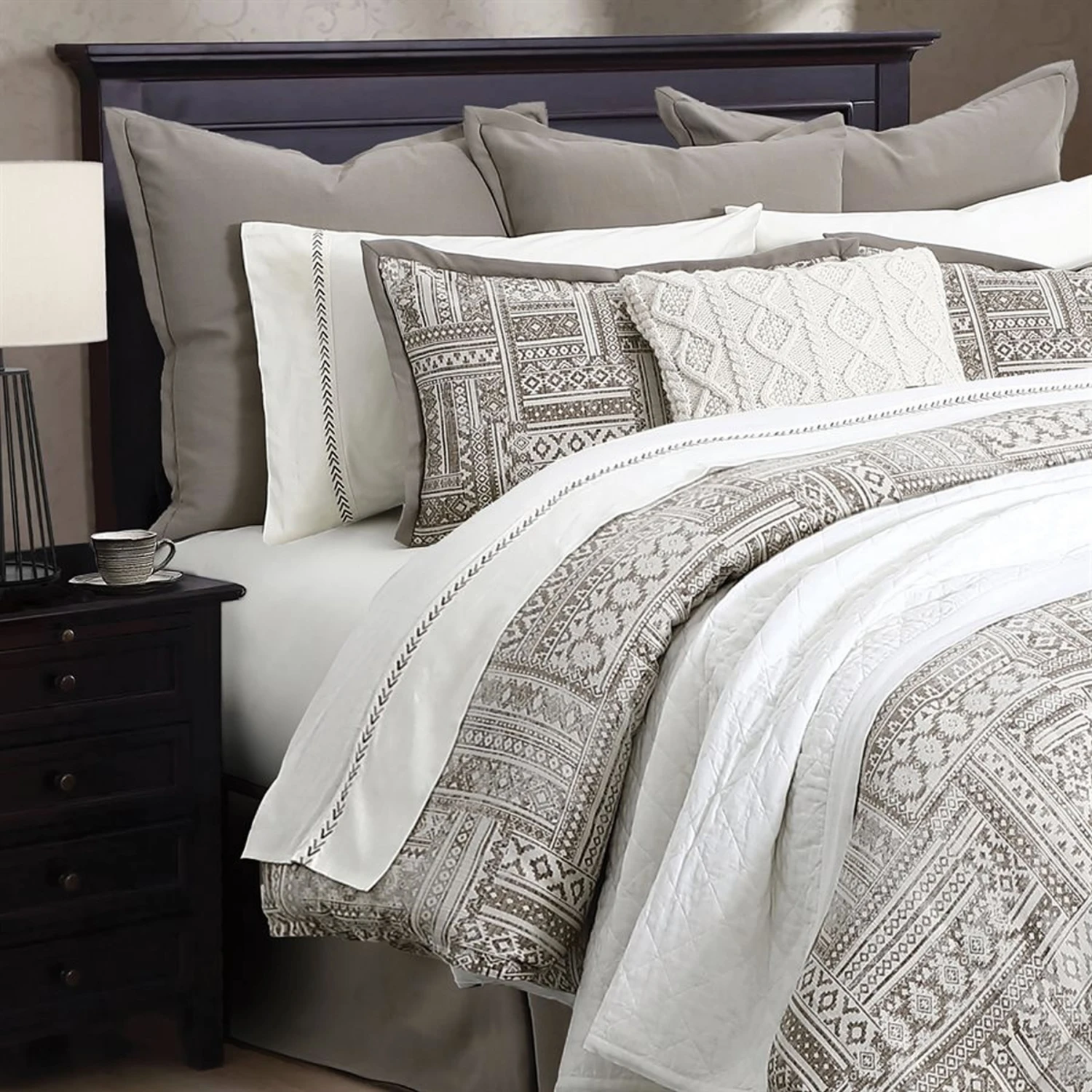 Update your Southwestern, Bohemian bedroom with the Trent comforter set. The patchwork style jacquard adds a subtle, Aztec texture to your bedding that allows you to add your own elements of style and color. The shades of taupe and cream set a neutral palette to play with, perfect for any home. Consider combing with a linen quilt to add to a natural, down to earth feel. 3 Piece Trent set comes with 1 comforter, and 2 standard shams.